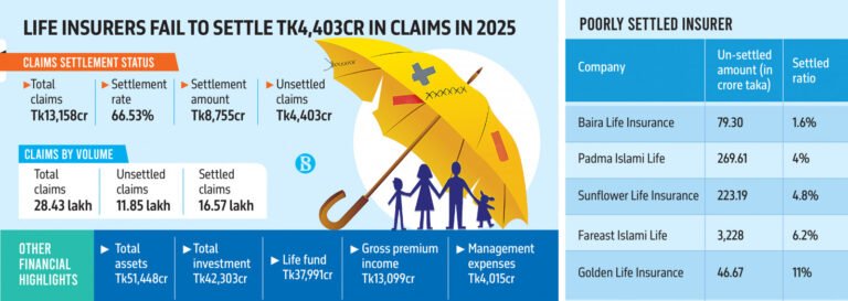 বাংলাদেশের জীবনবিমা খাতে ২০২৫ সালের শেষ প্রান্তিকে দাবি নিষ্পত্তির ক্ষেত্রে দৃশ্যমান অগ্রগতি অর্জিত হয়েছে। তবে বিপুল অঙ্কের বকেয়া দাবি এবং …